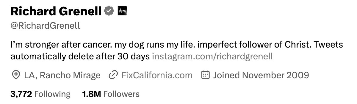 Grenell, një ish i dërguar gjatë administratës së parë të Preidentit Donald Trump, nuk mban më asnjë post qeveritar. Çertifikata e tij e sigurisë iu hoq në vitin 2023 dhe ai nuk mban asnjë rol formal në politikën e jashtme që prej asaj kohe. Ajo që mbetet është një figurë që vepron përmes kanaleve lobuese serbe, duke shfrytëzuar titullin e kaluar për të projektuar ndikim.