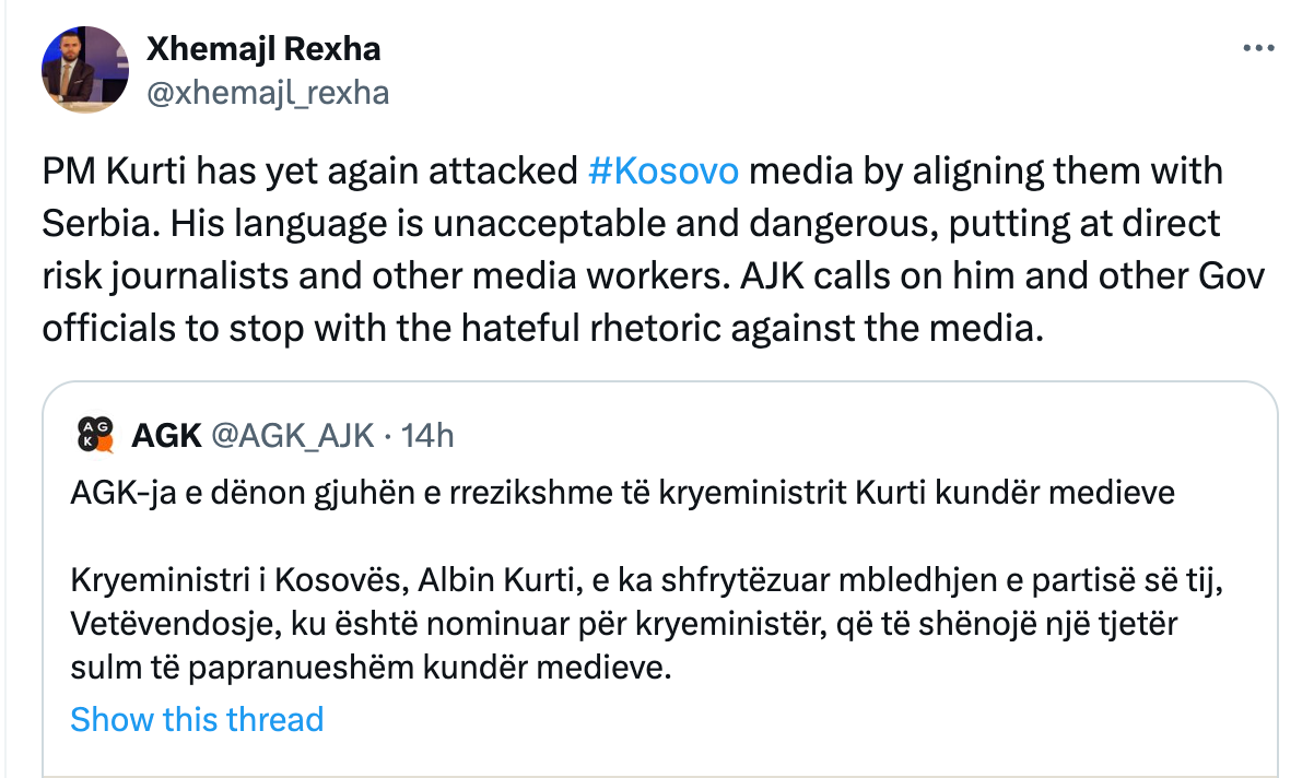 Të barazosh këto deklarata me një sulm ndaj lirisë së shtypit, siç kanë bërë AGK dhe kryetari i saj, Xhemajl Rexha, është në rastin më të mirë e pandershme dhe në rastin më të keq e rrezikshme dhe mashtruese. Kjo nuk përfaqëson një mbrojtje të medias së lirë, por një përpjekje për të mbrojtur entitete që duken më të interesuara t’i shërbejnë interesave të huaja sesa ato të publikut kosovar. Ky shtrembërim i qëllimshëm, i cili duket i ngjashëm me taktikat e përdorura nga mediat e lidhura me Kremlinin, përbën një kërcënim të drejtpërdrejtë për integritetin e gazetarisë dhe stabilitetin e kombit.