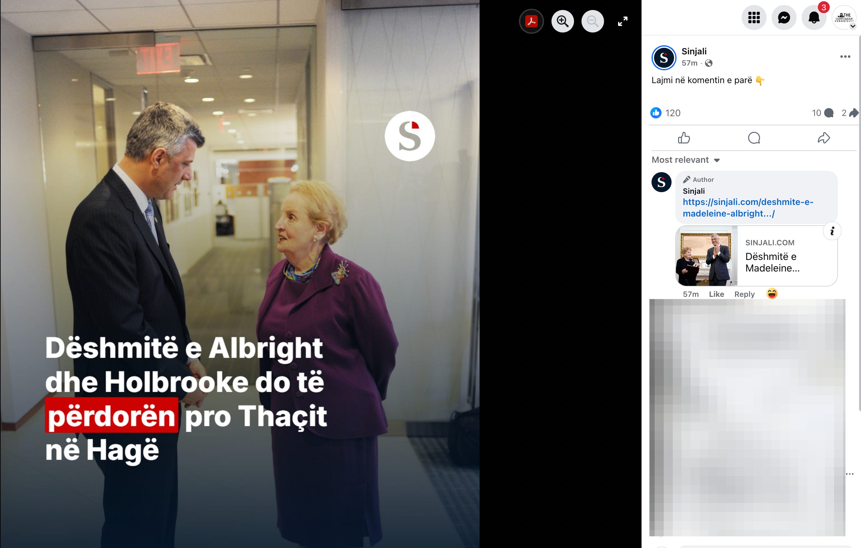 Ky PDF është një version i ruajtur i artikullit të Sinjali.com, i datës 19 gusht 2025, ku pretendohet se dëshmitë e Madeleine Albright dhe Richard Holbrooke do të përdoren në mbrojtje të Hashim Thaçit në Hagë. Dokumenti përmban titullin, tekstin dhe reklamat origjinale të publikimit, dhe shërben si burim parësor i analizuar në këtë verifikim faktesh. — Sinjali.com [PDF Artikulli i Arkivuar]