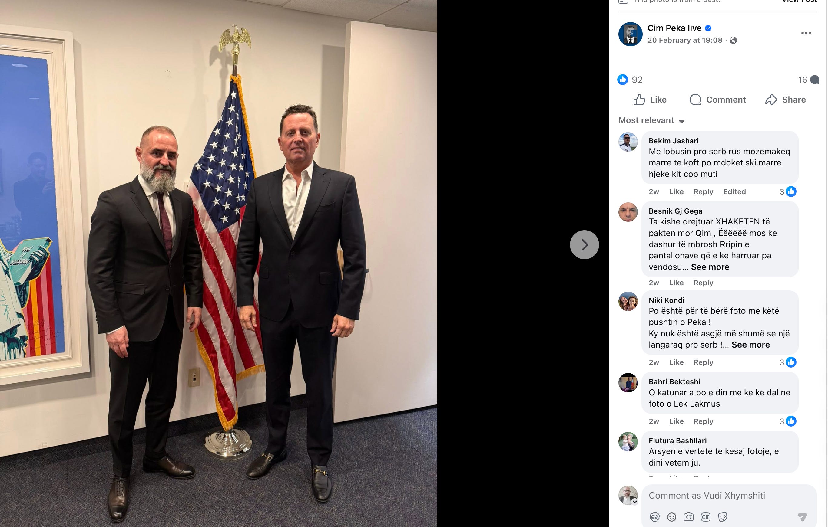 Çim Peka dhe Richard Grenell, fotografi e postuar mê 20 Shkurt, 2026.
