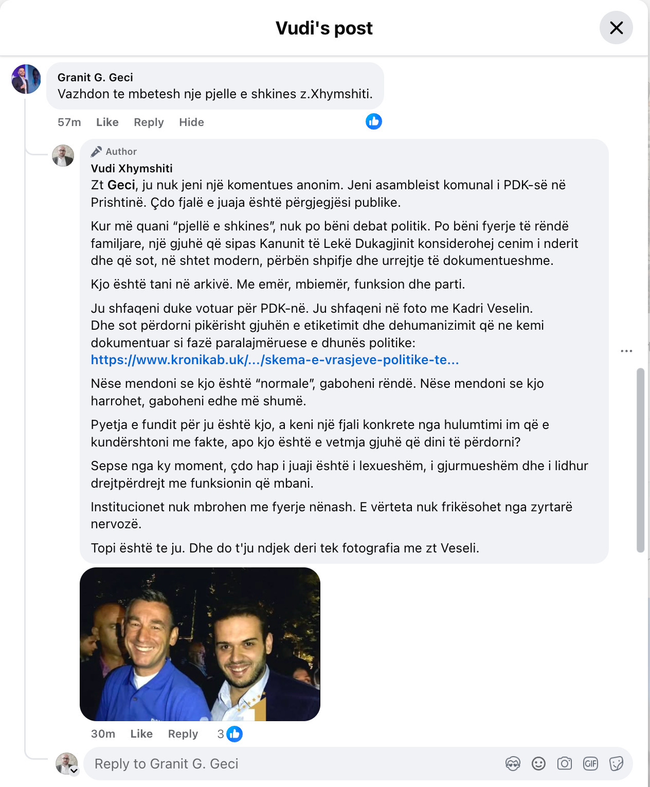 Reagimet e Granit Gecit pas publikimit të gjetjeve tona aktivizuan manualin e atentateve politike të Hashim Thaçit, fyerje, dehumanizim, zhvendosje identiteti, presion publik, heshtje faktesh. — Kronika B Lajme dhe Raportim.