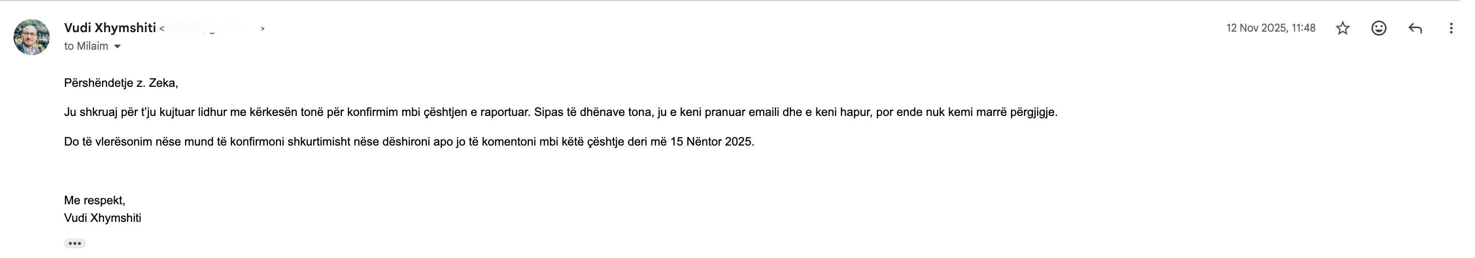 Thelbi i parë ku duhet ndalur është besueshmëria. Unë nuk kam kërkuar nga publiku që të më besojë mua si person. Unë kam kërkuar që publiku t’i lexojë burimet, dokumentet, kronologjinë. Hulumtimi ynë për Milaim Zekën nuk ka nisur nga ndonjë fiksim personal dy a tre vjeçar, siç pretendon ajo, por nga një moment shumë konkret, i dokumentuar brenda redaksisë. Në shkurt të këtij viti, Halit Sahitaj u paraqit tek ne me pretendime për një skandal ku Richard Grenell, ish i dërguar për dialogun Kosovë-Serbi, supozohej se po merrte para nga oligarkë rusë përmes kriptomonedhave3. Sahitaj, donte që ne të botonim materiale të cilat, pas verifikimeve tona, rezultuan të dyshimta në thelb. Gjatë atyre komunikimeve elektronike, Sahitaj vetë e përmendi emrin e Milaim Zekës, e përmendi raportin e John F Moynihan4, dhe aty filloi fija e vërtetë e kësaj historie. Ne nuk shkuam pas Milaimit, Milaimi dhe njerëzit e tij erdhën tek dera jonë, duke tentuar të na përdorin në lojërat e tyre.